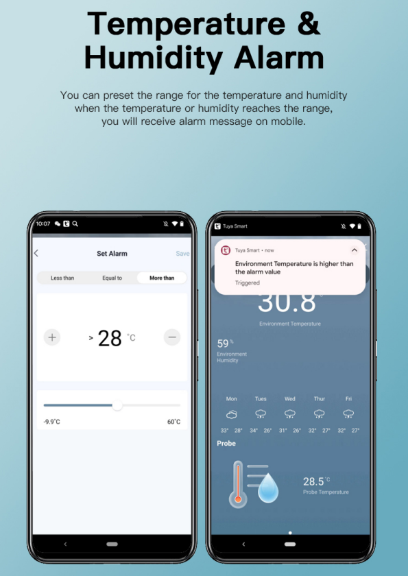 6)Probe Measure Range: -40ºC~120ºC